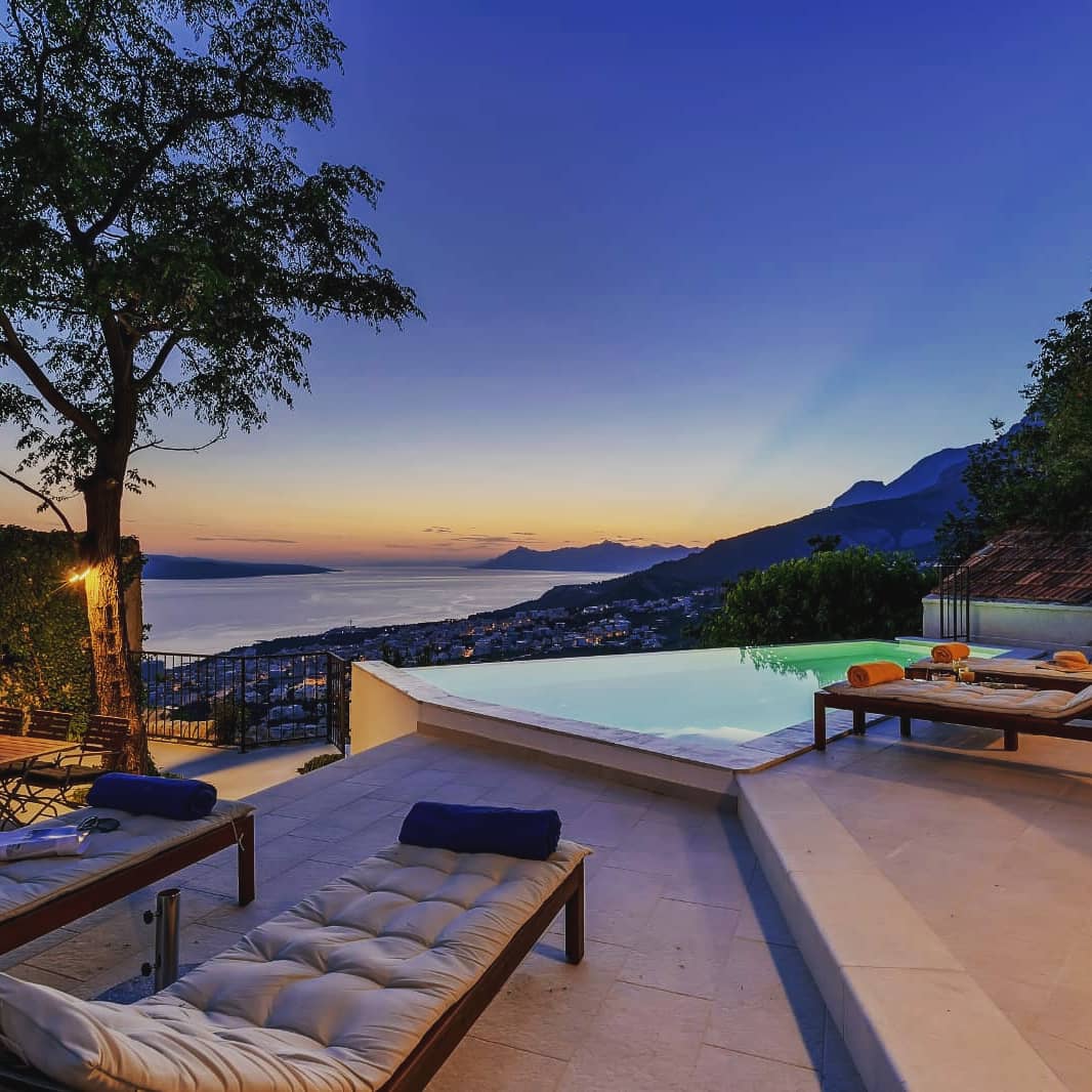 Villa Bianca is a charming stone villa nestled in a tranquil setting at the foot of Mount Biokovo, offering breathtaking views of Makarska and the nearby islands of Brač and Hvar. Fully renovated in May 2021, the villa harmoniously blends traditional Dalmatian architecture with contemporary comfort. Its lovely garden terrace provides the perfect spot to unwind and soak in the serene surroundings. With 3 spacious bedrooms, 4 bathrooms, and 150 m² of elegant living space, it’s ideal for a peaceful getaway. Guests can enjoy a range of modern amenities, including a private heated pool, Wi-Fi, air conditioning, barbecue and complimentary parking.
